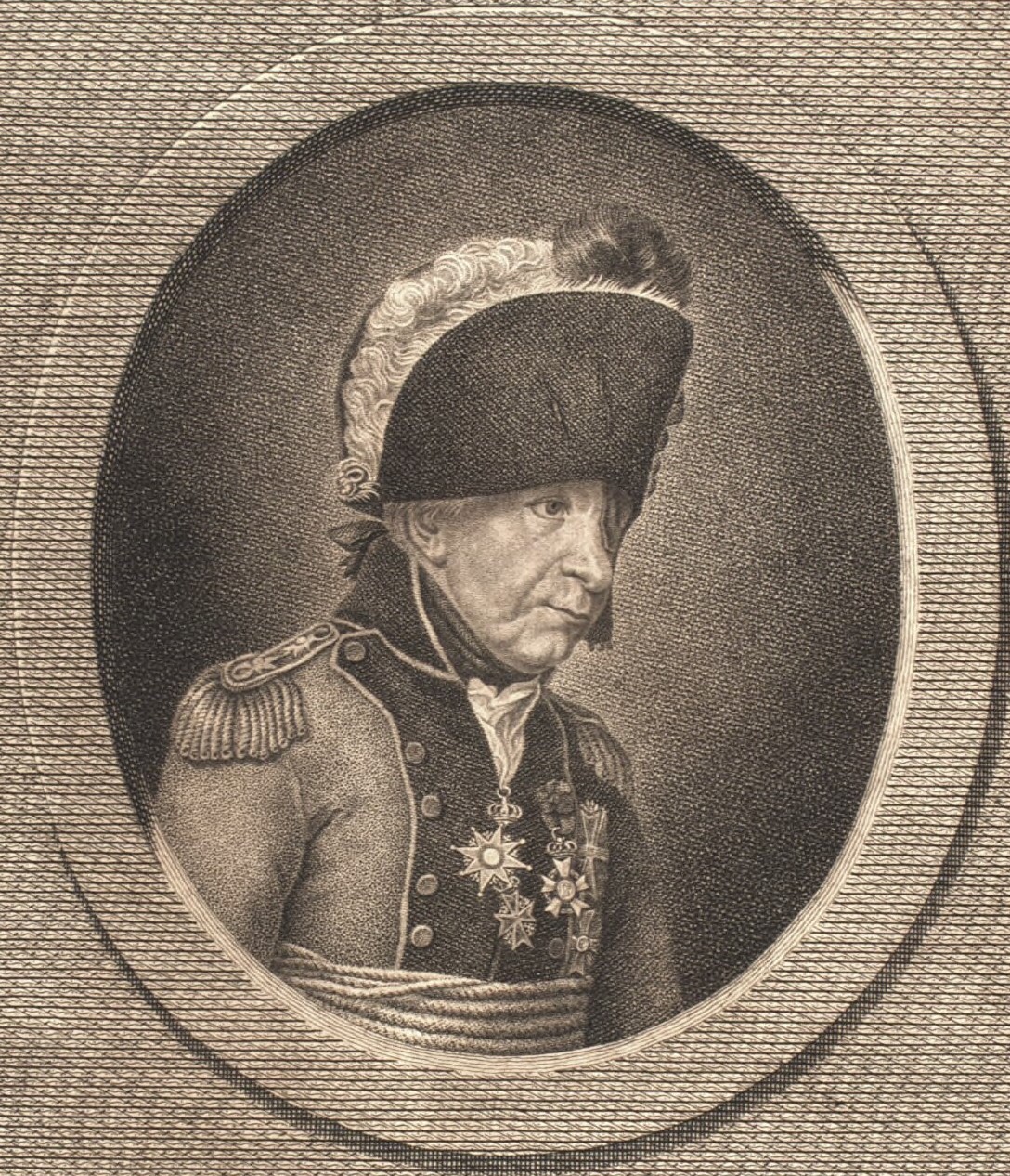 Johann von Ewald (also Johann Ewald) was born in Kassel on 31 March 1744 and died near Kiel on 25 June 1813. He entered military service in Hesse-Kassel as a cadet in an infantry regiment in 1760 and began an early active-service record during the Seven Years’ War. In the same year he was wounded during the siege of Kassel and was promoted to Fähnrich. He became sekondløjtnant in 1766. While stationed in garrison at Kassel in 1770, he lost his left eye in a duel, and during recovery pursued intensive study of military science. In 1774 he published a treatise on the conduct of a detachment in the field, which brought him favor at court, promotion to captain, and command of a Jäger company.